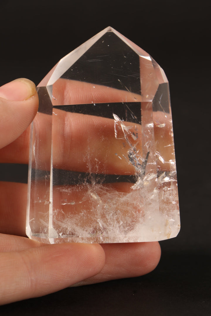 A gorgeous clear quartz tower with great clarity. Put this tower on one of our color changing LED light stands for a spectacular show!