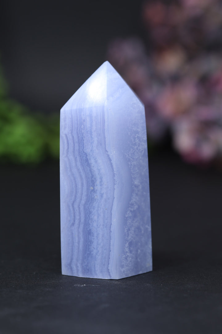 Blue lace agate is a banded variety of chalcedony with typically very fine bands of alternating dark blue, light blue, and white. It is commonly found in Kenya and Namibia and is usually turned into beautiful polished pieces.