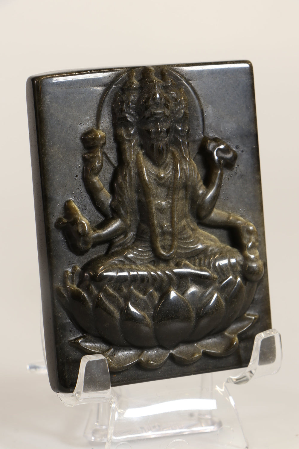 Obsidian also appears in a variety called Sheen Obsidian. Gold Sheen Obsidian exhibits a beautiful gold shimmer when viewed from the correct angles. This gold sheen is due to gas bubbles in the lava that cool in successive layers. Rainbow Obsidian is another form of Sheen Obsidian that gets its iridescent sheen from inclusions of magnetite nanoparticles.