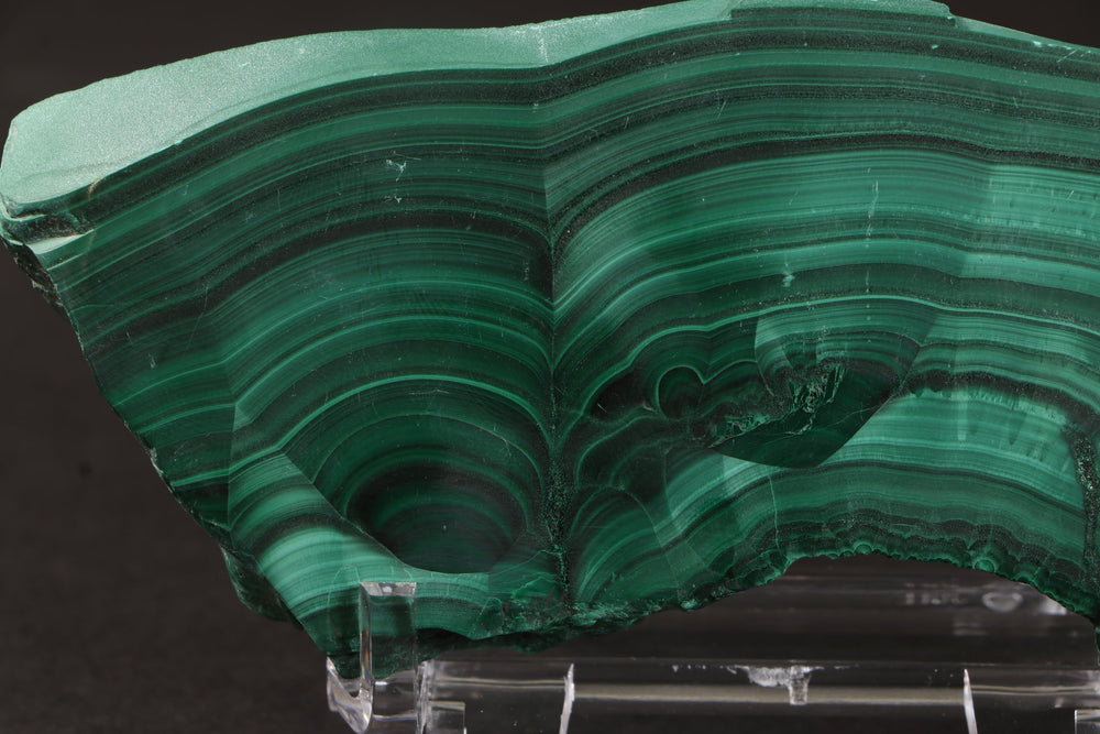 Great color and orbicular patterns on this malachite slab from the Congo.