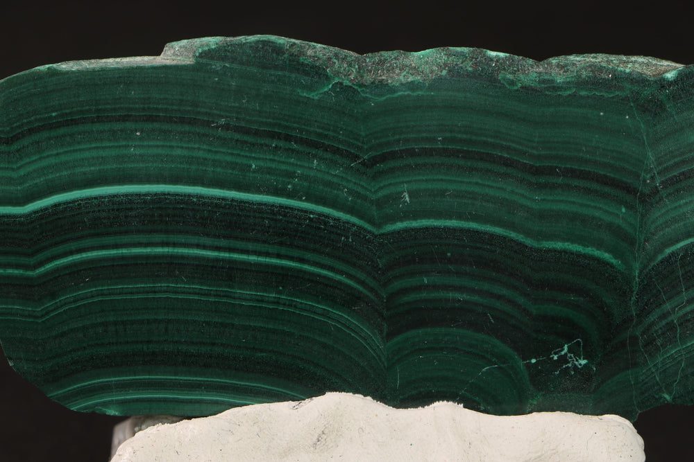 Great color and orbicular patterns on this malachite slab from the Congo.