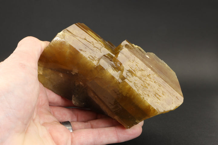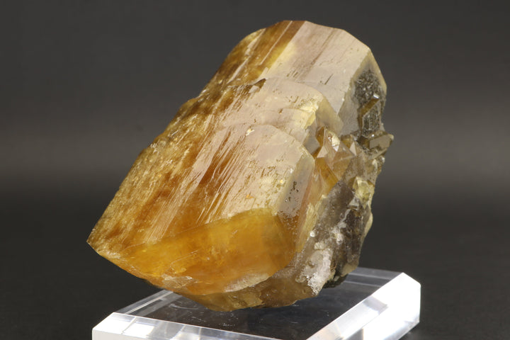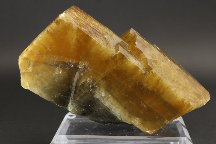 Deep, rich golden color and great luster on this barite specimen from Xiefang Mine. This large crystal can be displayed several ways to observe its beautiful growth structure.