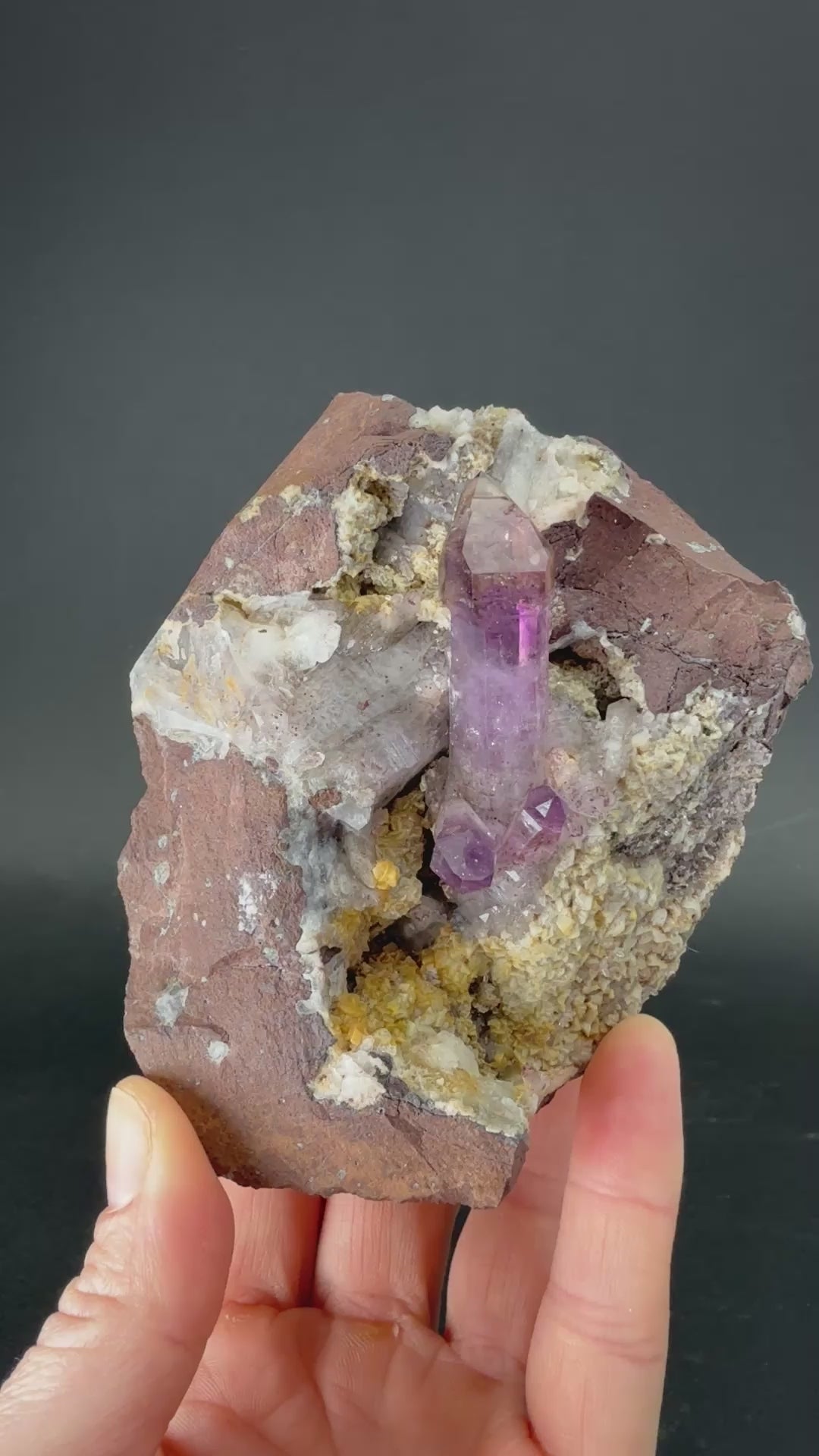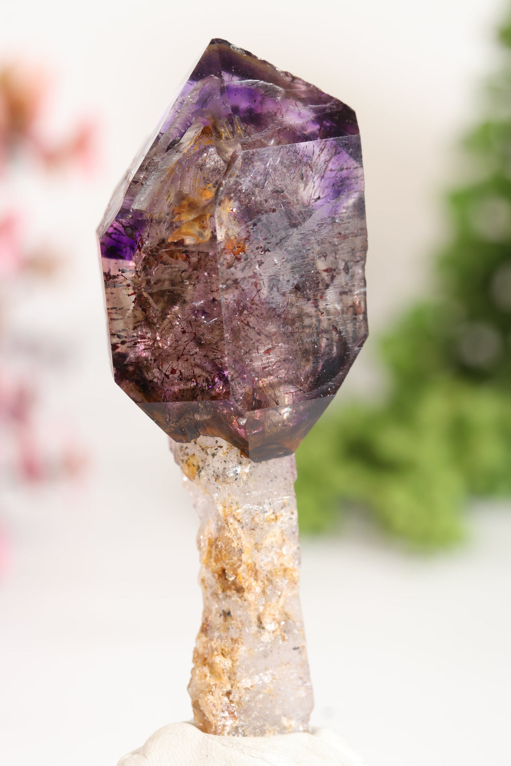 Amethyst, a purple variety of Quartz, is easily one of the most recognizable minerals on the planet. Its name is from the word "amethystos", which is Greek for "not drunk". It was believed to be an antidote to drunkeness in those ancient times. Amethyst is found worldwide, but some regions are better known for their unique and beautiful specimens. Some popular varieties include Brandberg Amethyst from the Goboboseb Mountains, Namibia; rare elongated natural points from Veracruz, Mexico; and Hematite included specimens from Thunder Bay, Ontario.
