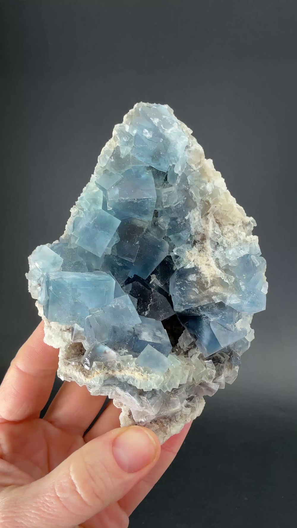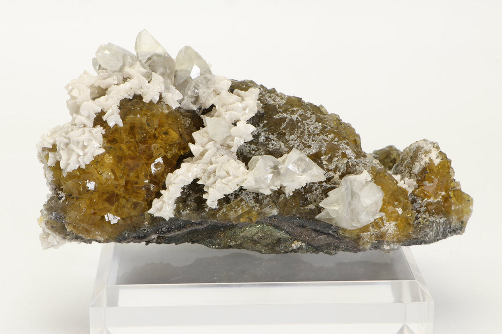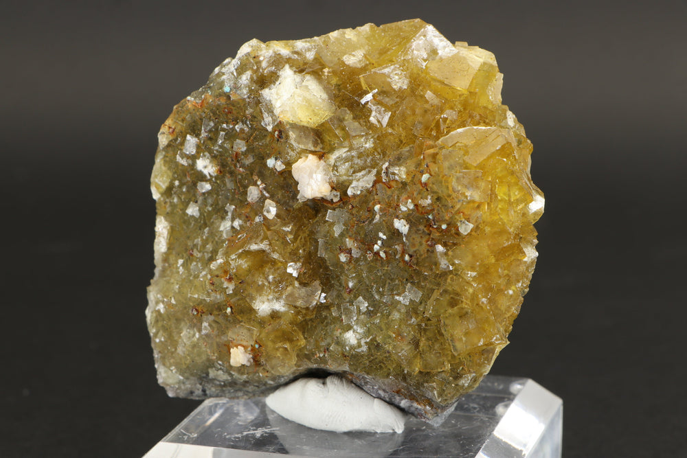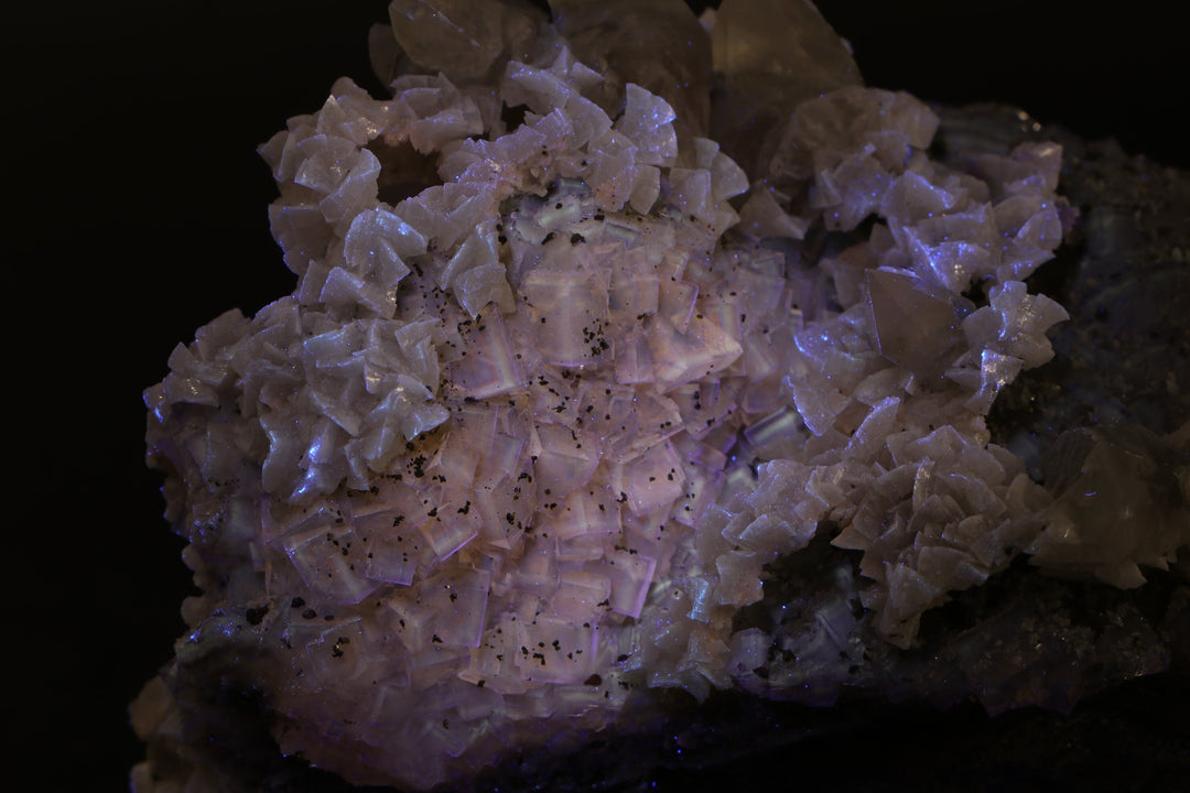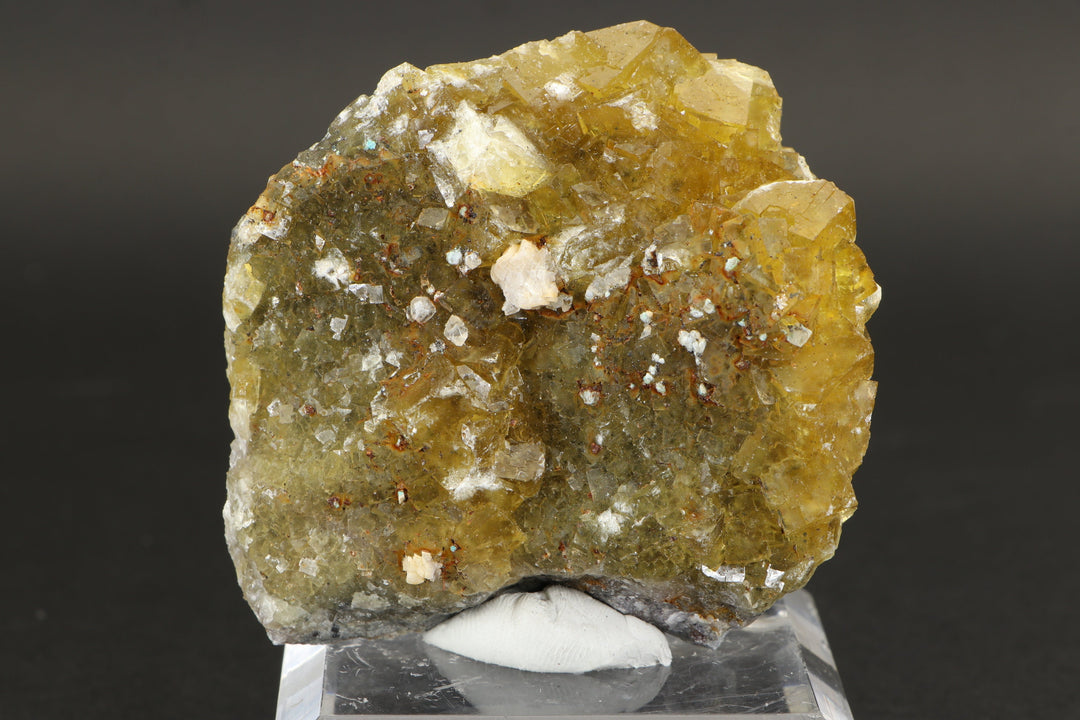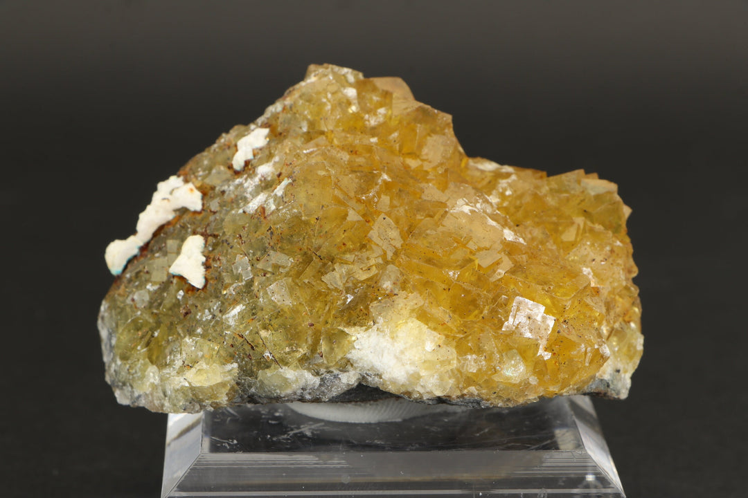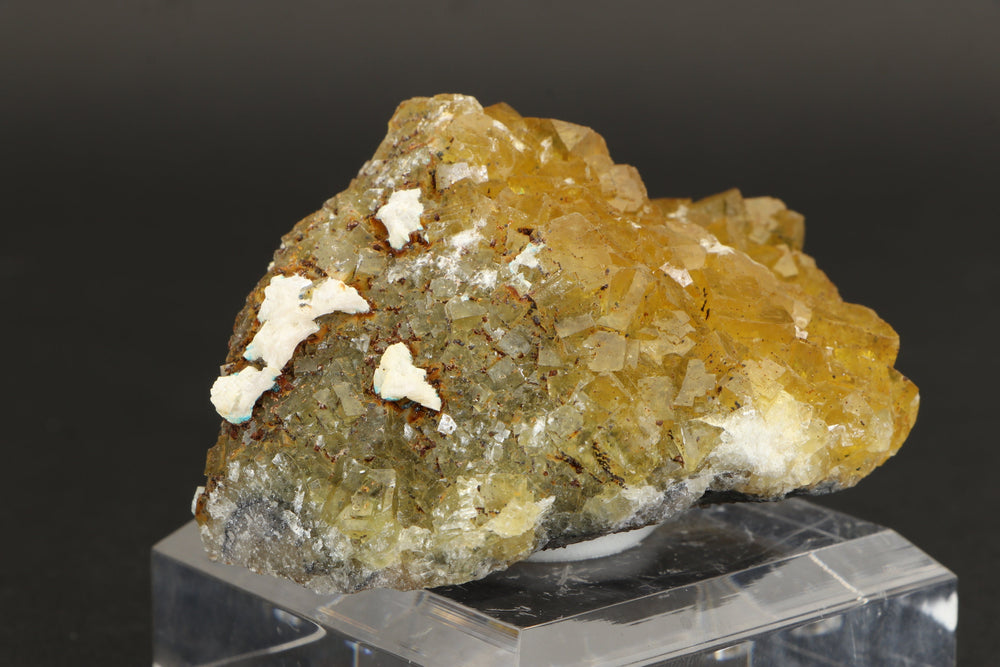 Fluorite occurs in a variety of colors, or can be colorless. Among the mineral kingdom it exhibits one of the widest varieties of colors. Impurities in the Fluorite cause its colorations. It is a very common mineral that occurs throughout the world and is the only mineral that large quantities of elemental fluorine can be extracted from. England has produced some of the best specimens of Fluorite, most notably from the Rogerly Mine.