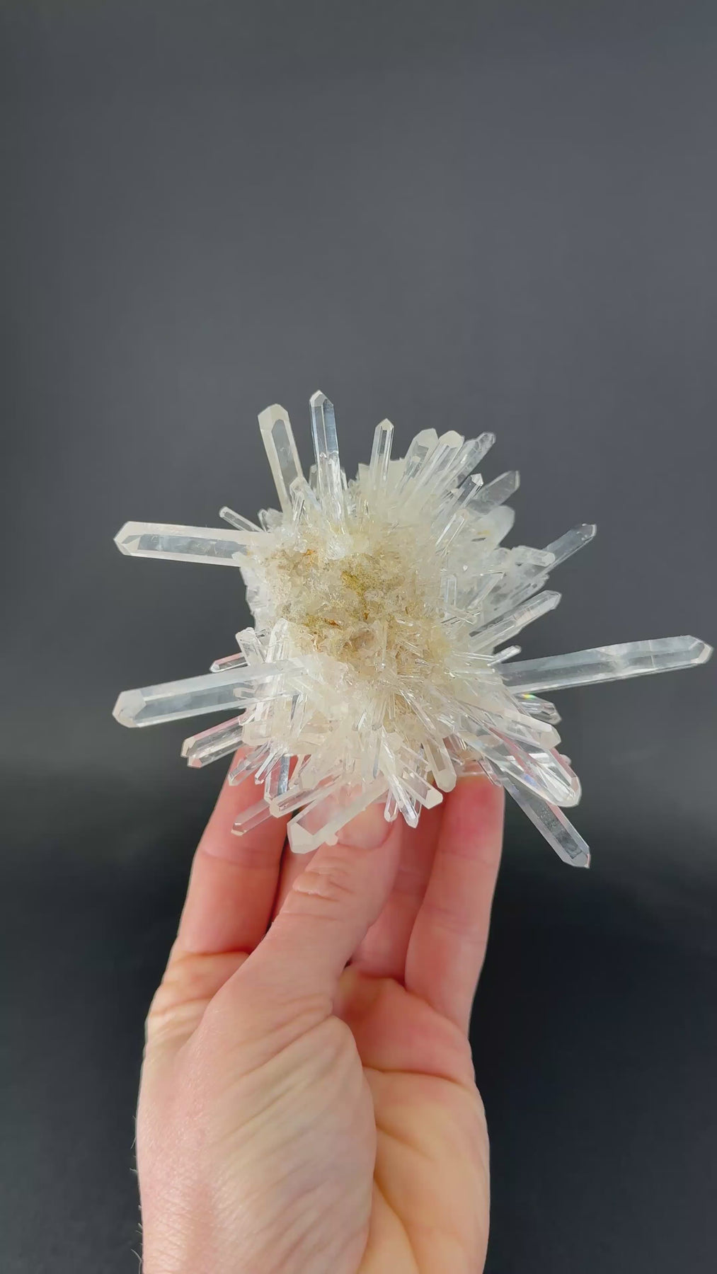 A striking natural mineral specimen from the famed quartz deposits of Santander, Colombia. This piece features slender, radiating needle-like quartz crystals with a lustrous, glassy sheen, showcasing exceptional clarity and delicate form. Ideal for collectors and display, this unique formation highlights the beauty and complexity of quartz in its most elegant, elongated crystal habit. Perfect as a centerpiece in mineral collections or as a distinctive decorative accent.