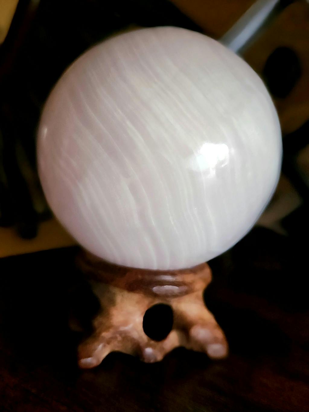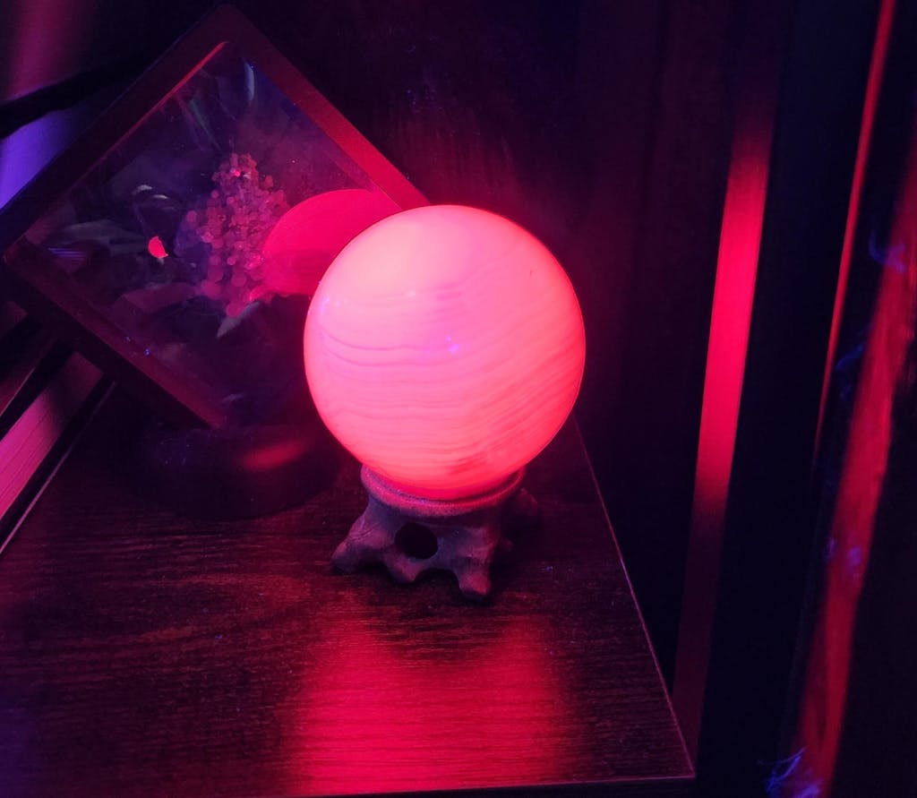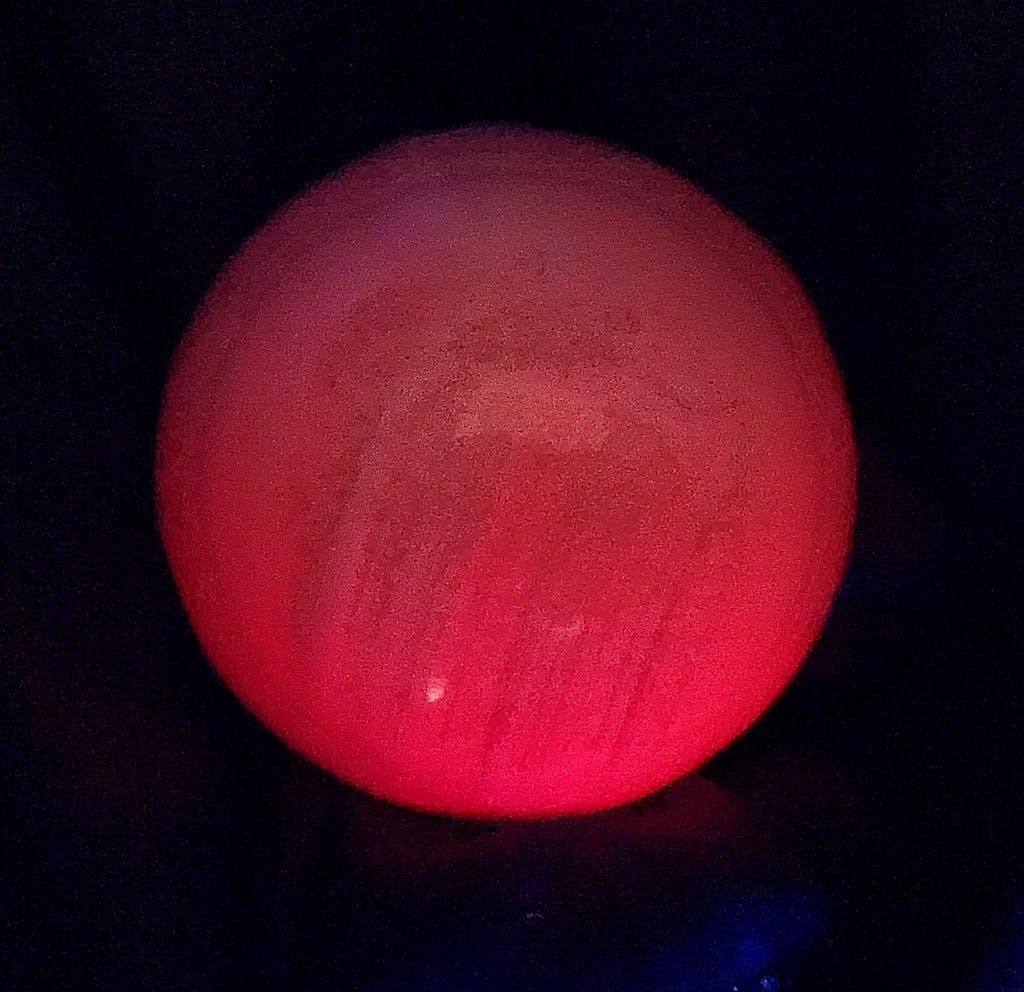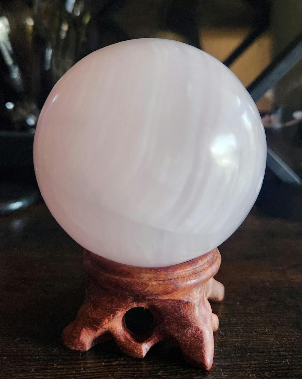 I purchased this sphere for my sister as I am completely captivated by mine. They show off different shades as the light changes, from white to delicate pinks. They are my favorites under uv light, glowing molten tones of fuchsia and red. Love these!!! Thank you for the speedy, well protected shipping, the lovely gift, and your superb selection!🙏🌞🩷