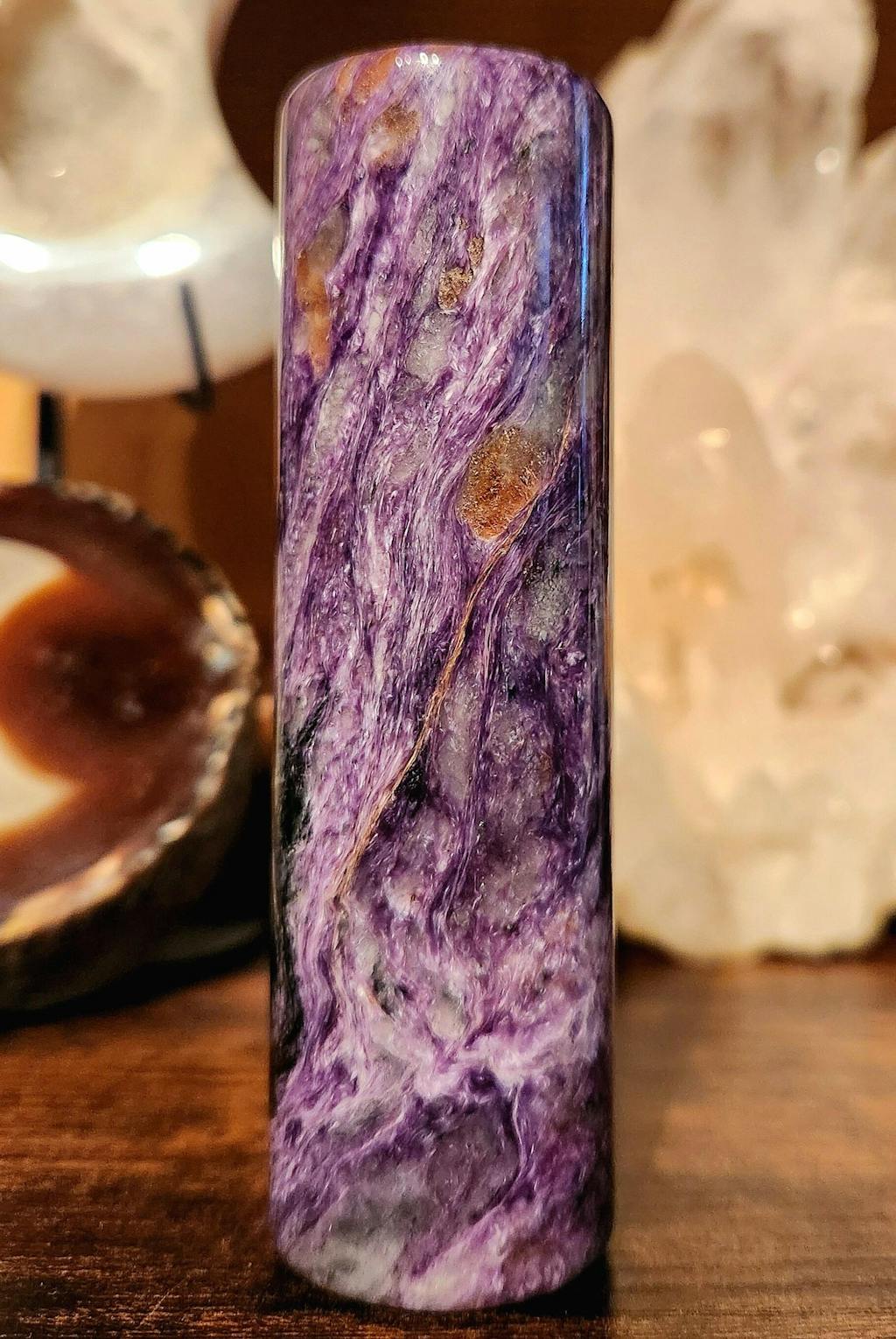 I was thrilled to find an affordable piece of Charoite, even better in an interesting shape! The quality blows me away! You can see so many of the different minerals that make it up and the structures of each, just amazing!!! When I put it under uv light I was in awe of all colors! Quickly shipped and perfectly protected, this is one of the best shops for high quality crystals! Thanks again for a truely special treasure🙏❤️