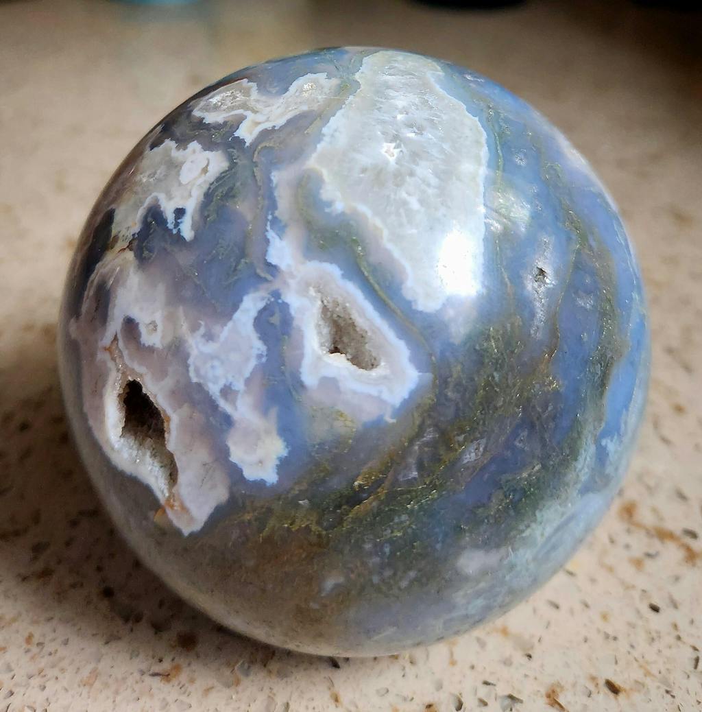 I love the multitude of colors that swirl amongst the icy whites of the crystal patches and the sparkly druzy filled caverns. The cool blues and mossy greens are calming and a pleasure to gaze at as I turn it in my hands, enjoying everything this stunning specimen has to offer! Such quality!!! I feel so lucky to have found this shop!!! Every crystal has far exceeded expectation! Fast shipping and stellar customer service are much appreciated!🙏💖