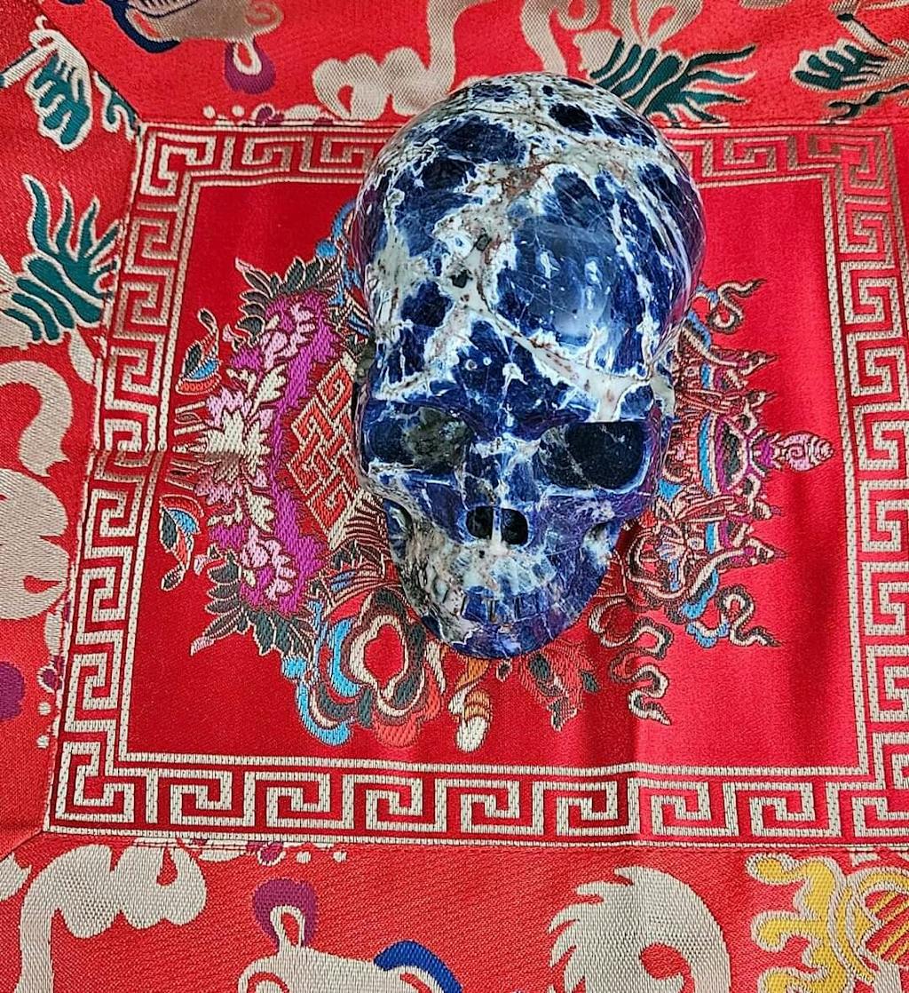 I think it would take a language from Atlantis or Lemuria itself to describe adequately the beyond five-star beauty, quality sensitive carving and high energy of this sodalite skull which arrived from Jessica and Doug.