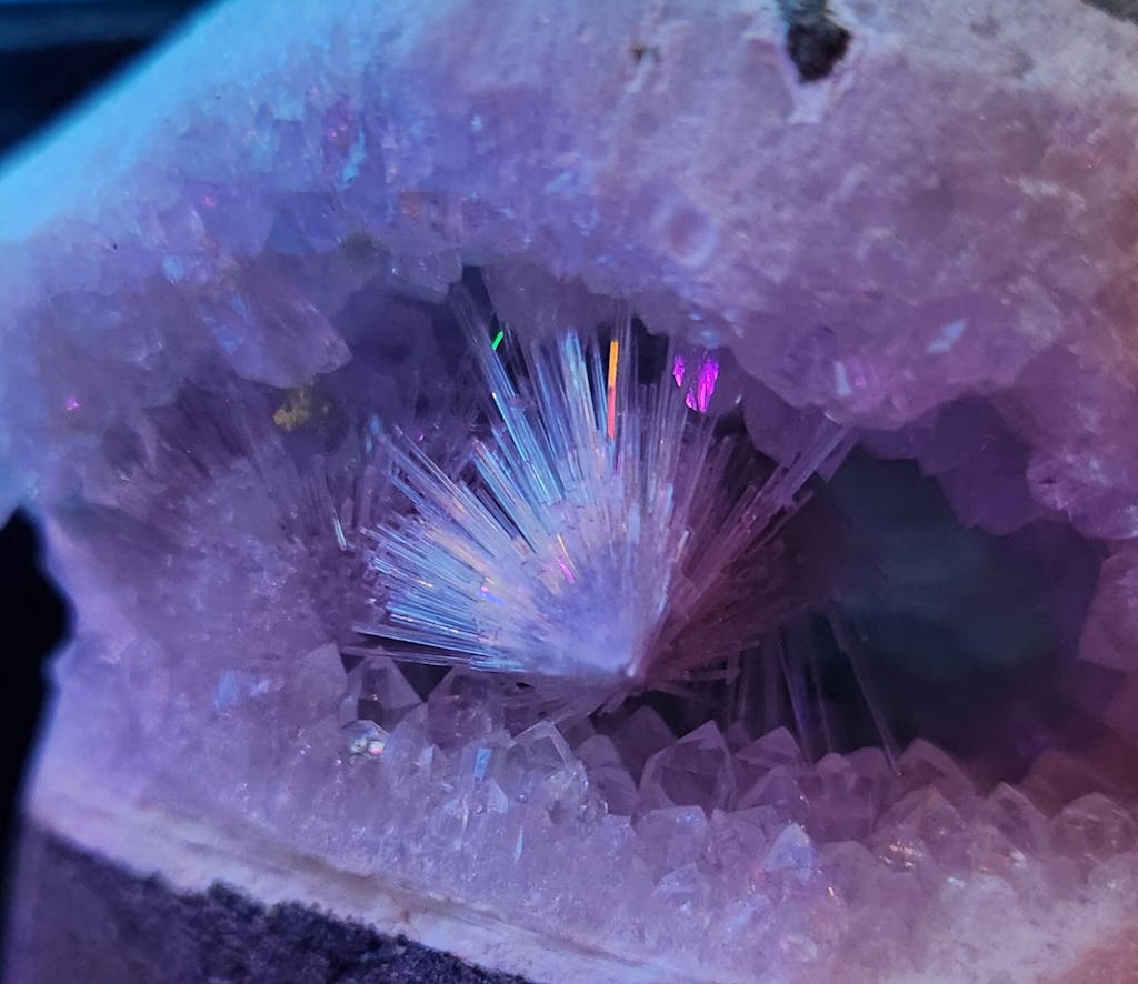 This pretty geode has lovely color and charming sparkle! It makes me smile, it is too sweet! Quickly shipped and perfectly packaged, this delicate beauty arrived in perfect condition. Thank you Jessy and Doug, for all the beauty you have blessed me with!!!🙏🌈🌟♥️
